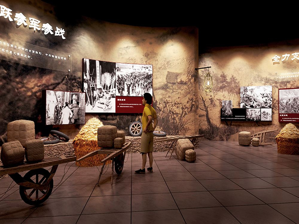 根據展館場地面積和主導展示方向,對上述各類文物進行合理的展項規劃,采用“圖文展板+實物展出+多媒體展項”的布展形式,實現革命紀念館從“灌輸式”展出向“體驗式”展出的轉變。