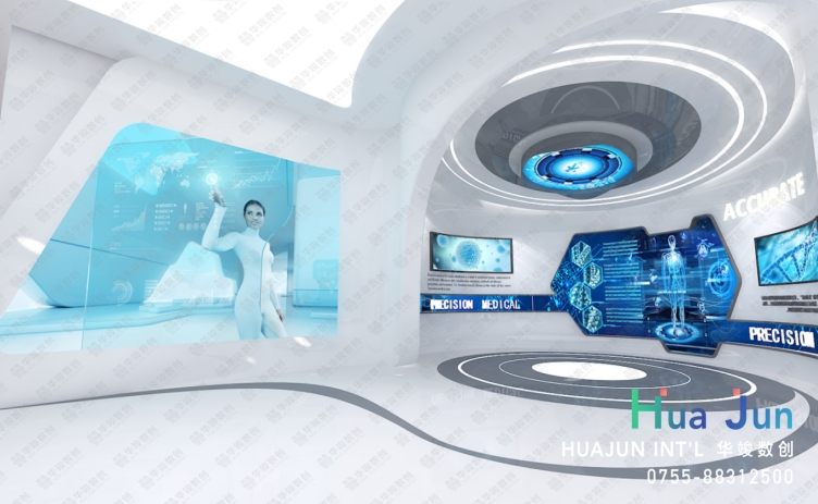 多媒體互動展示是未來醫(yī)療展廳的核心元素之一。通過先進的多媒體技術(shù),如虛擬現(xiàn)實(VR)、增強現(xiàn)實(AR)和全息投影等,參觀者可以身臨其境地體驗未來醫(yī)療科技。例如,參觀者可以通過VR設(shè)備體驗虛擬手術(shù)過程,了解未來手術(shù)室的操作流程和設(shè)備配置。AR技術(shù)則可以用于展示人體解剖結(jié)構(gòu)和疾病診斷過程,讓參觀者直觀地了解醫(yī)療知識。